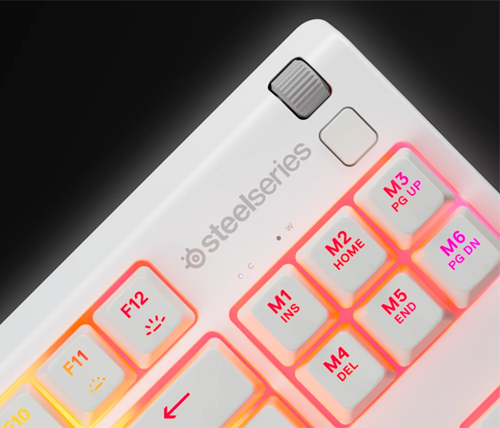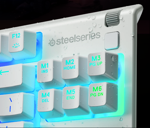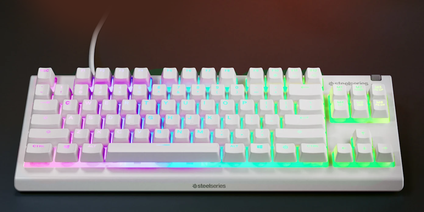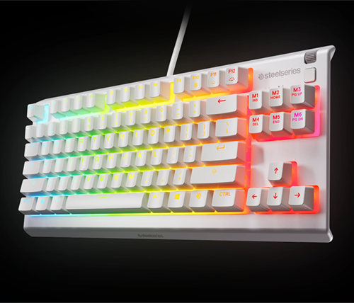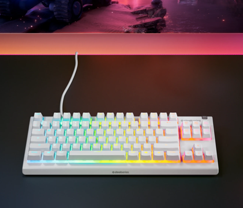 מקלדת גיימינג עם תאורת RGB ועמידות למים עברית אנגלית Steelseries Apex 3 TKL צבע לבן