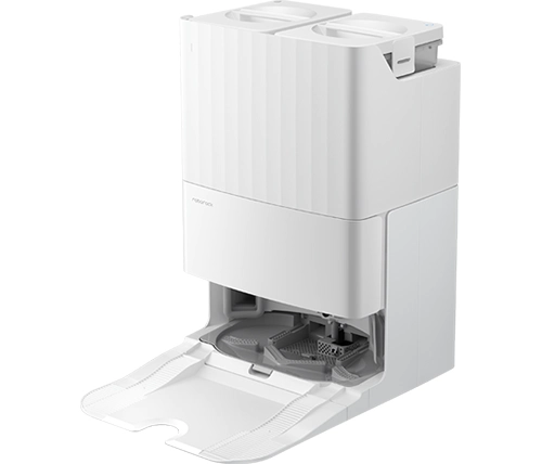 שקית האבק של תחנת העגינה מתרוקנת באופן אוטומטי לפח האשפה של השואב, מאפשר לכם עד 7 שבועות ללא ריקון ידני, מעניק נוחות רבה.