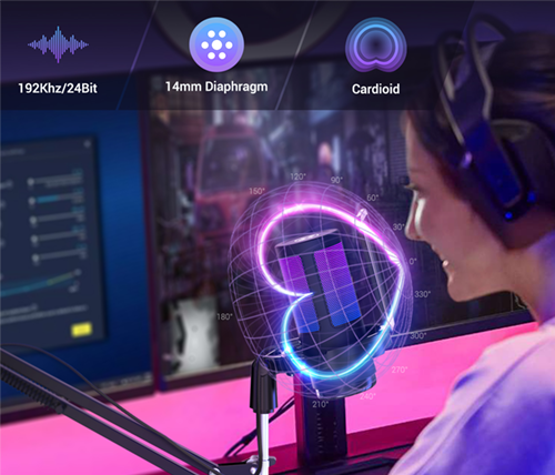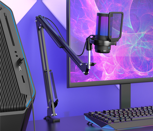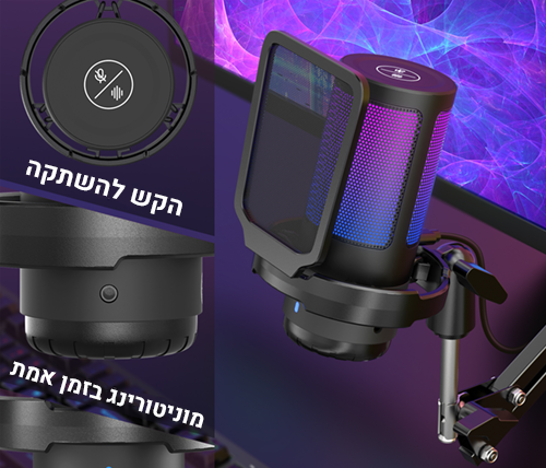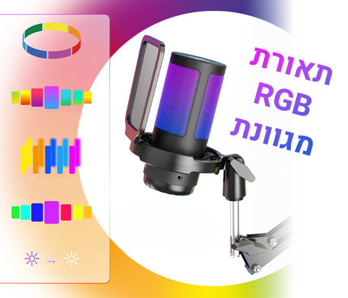 מיקרופון גיימינג קונדנסר - תאורת RGB חיבור USB-C וכניסה לאוזניות כולל זורע - Ivory Sound ZTD38T