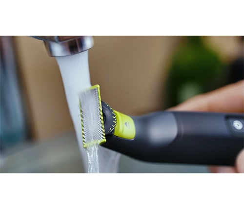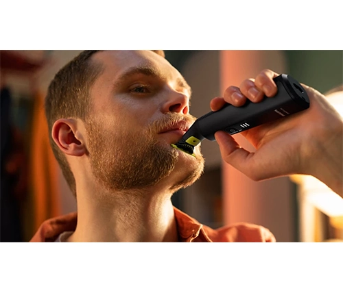 OneBlade מתאים עצמו לקווי המתאר של הפנים, ומאפשר גילוח קל ונוח גם באזורים קשים לגישה. הלהב הדו-צדדי מאפשר עיצוב מדויק והזזה חופשית לכל כיוון.