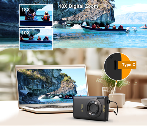 מצלמה דיגיטלית 64MP קומפקטית - וידאו 4K, מסך 2.8 אינץ, זום דיגיטלי x16 - צבע לבן - MIZUKI