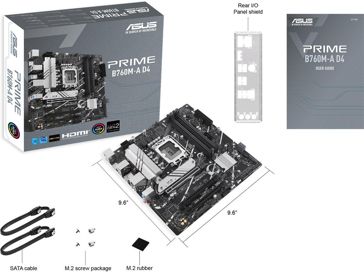 לוח אם Asus PRIME B760M-A D4-CSM, ערכת שבבים B760, תושבת 1700 למעבדי דור 12-14, כרטיס רשת קווי Realtek 2.5Gb Ethernet, חיבורי USB 10Gbps ו- USB 2.0