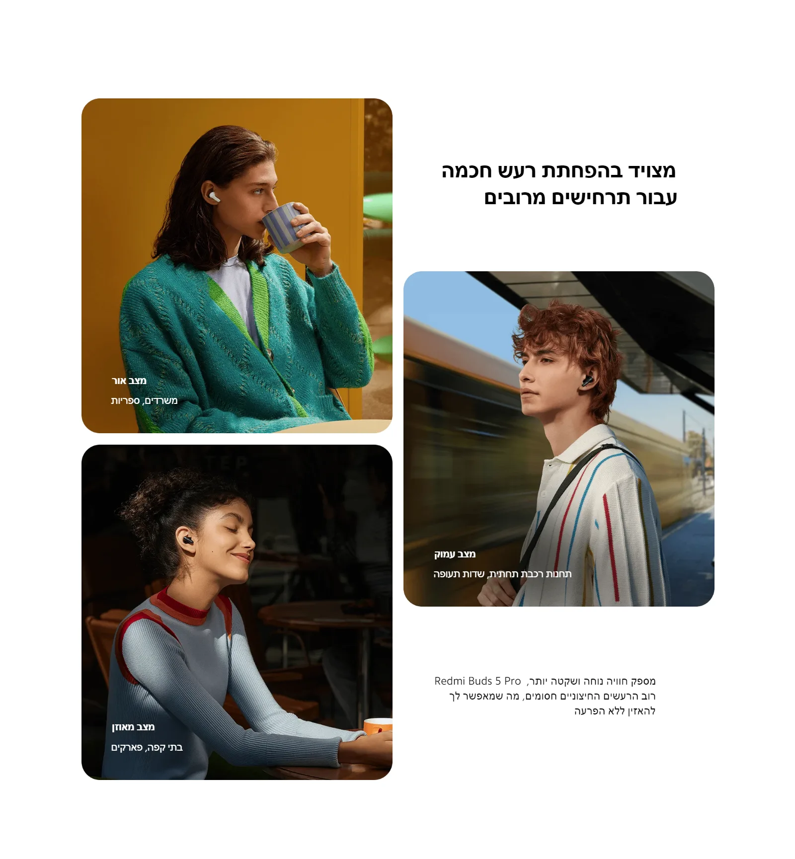 מספק טבילת אודיו משופרת על פני מגוון תוכן, Redmi Buds 5 Pro הוא אידיאלי לצפייה בסרטים בטלוויזיה, מחשבים או טאבלטים, ומספק חווית שמע שובת לב בכל פעם*.