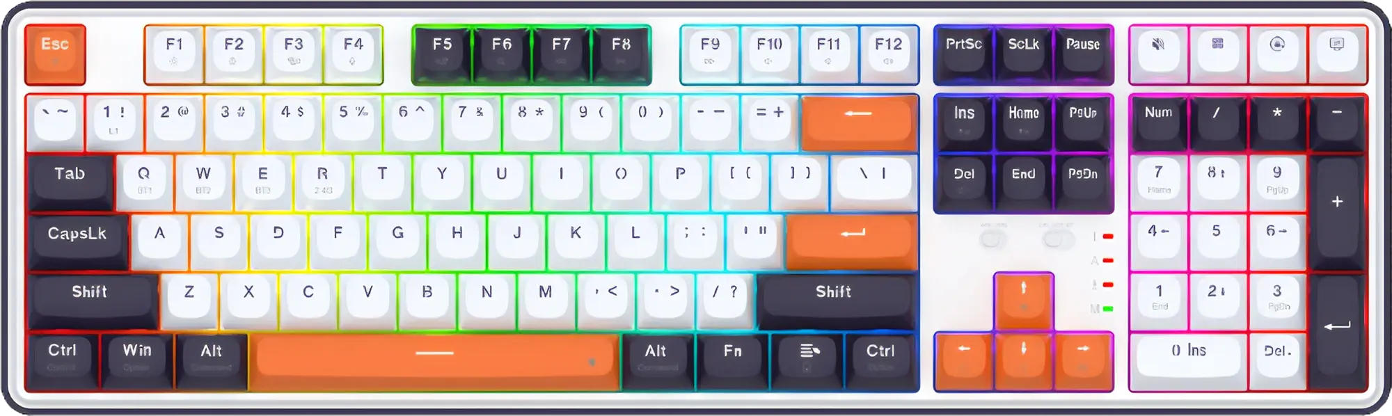 העיצוב שונה ממבנה ההברגה המסורתי – באמצעות כיסויים מהודקים בדיוק בשילוב גומיות Gasket המסייעות בהפחתת רעשים ובהענקת גמישות. מבנה זה מספק תגובת הקלדה אחידה, בעוד הריפוד האנכי מפחית רעשים נוקשים, ומייצר תחושת הקלדה נעימה.