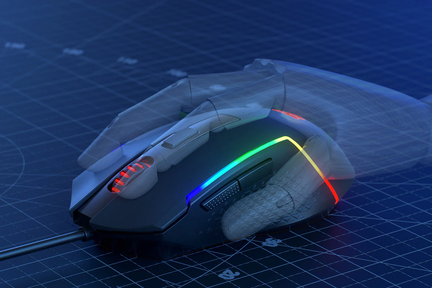 שלדת עכבר חזקה עם עיצוב קליפות ידיים כללי (Claw Grip) המתאים לגיימרים ומפחית עייפות גם בשימוש לאורך זמן.