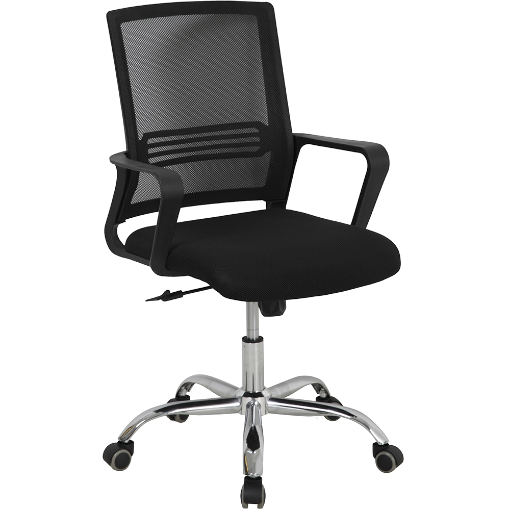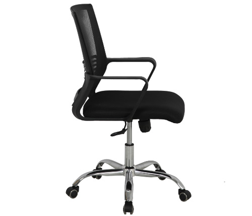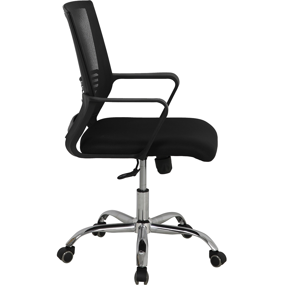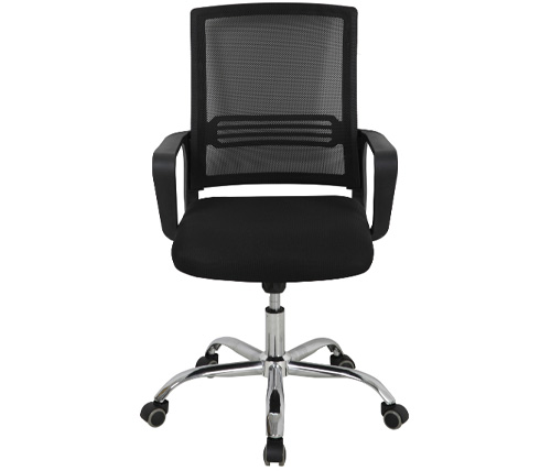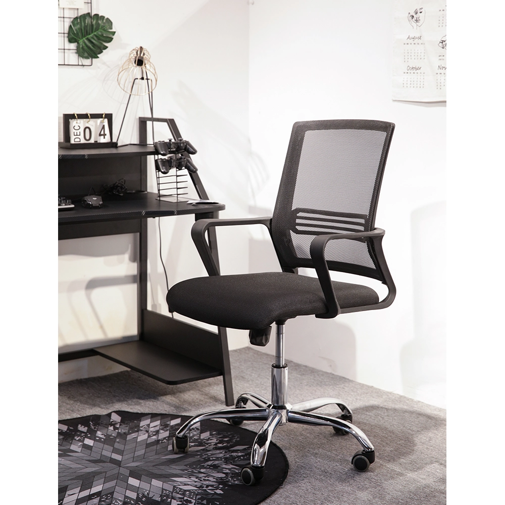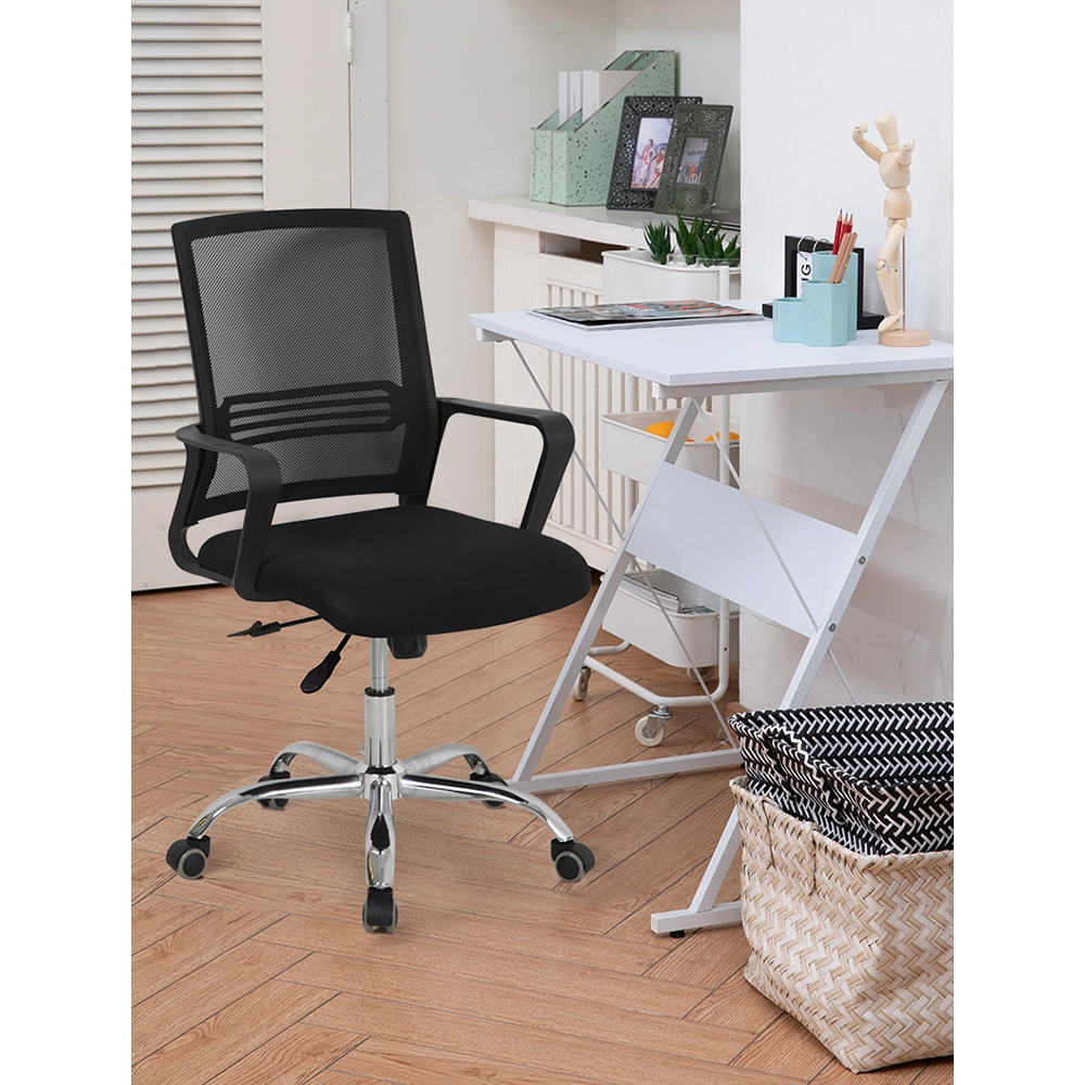 כיסא משרדי ארגונומי עם גב רשת נושם, בעיצוב מודרני וקומפקטי, מושלם למשרד, לעבודה מהבית או לסטודנטים, כולל משענת גב תומכת, כיוונון גובה, בסיס מצופה כרום וגלגלים נוחים לשעות ארוכות של שימוש יומיומי