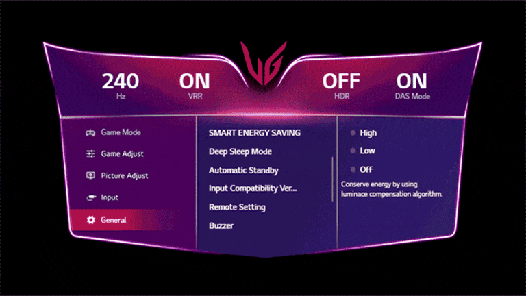 כדי ליהנות מבהירות גבוהה יותר בסביבת הגיימינג של OLED בסביבת המשחקים, יש לכבות את מצב 'חיסכון חכם באנרגיה'.