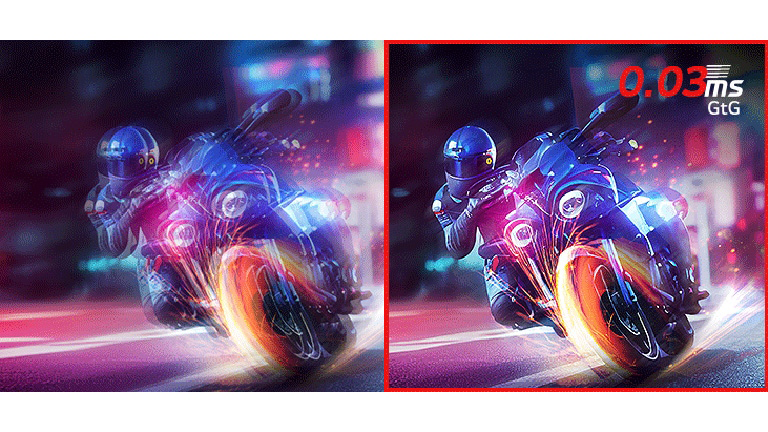 זמן התגובה של 0.03ms (GtG) מאפשר הפחתה של תופעת ההילה ורינדור נקי של העצמים, להנאה ממשחק עם תנועה חלקה יותר ושטף חזותי חלומי.