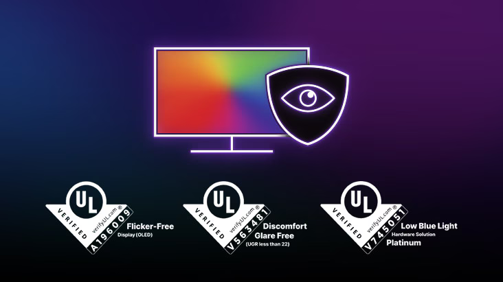 הפאנלים של LG OLED אושרו על ידי UL כנטולי הבהובים, נטולי סנוור שגורם לאי נוחות, וכבעלי אור כחול מופחת.