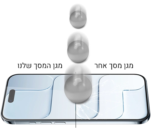 כדור פלדה במשקל 32 גרם נופל מגובה 50 ס"מ, 3 פעמים – ללא שבר.