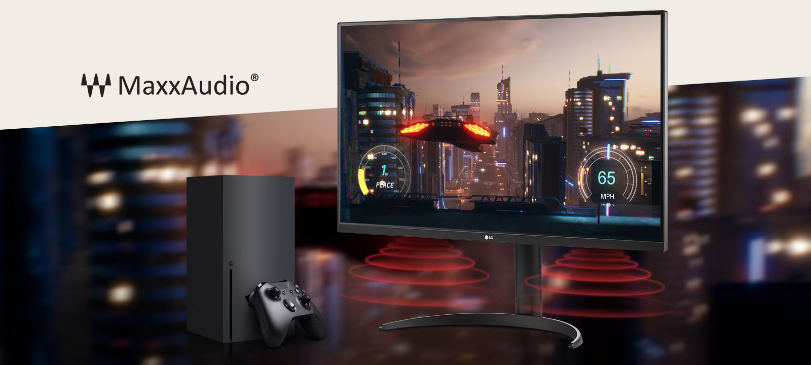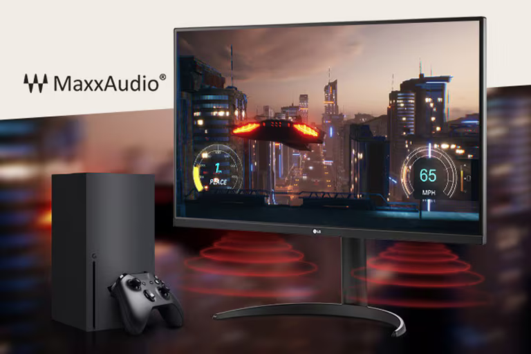 32UR550K לא רק מספק ריגושים עם תמונה איכותית וסאונד סטריאו (כולל ®MaxxAudio Waves), אלא גם מספק Dynamic Action Sync ומייצב שחור לחוויית משחק מציאותית.