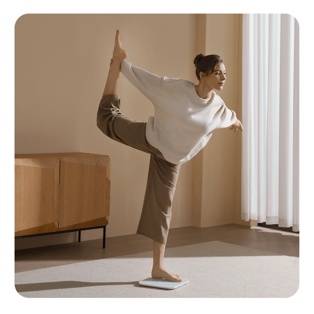 ל-Xiaomi Smart Scale S200 יש אפשרות בדיקת שווי משקל*. בעת עמידה על רגל אחת על המשקל, ניתן לקרוא את הנתונים באפליקציית Xiaomi Home כדי להבין טוב יותר את הקואורדינציה, היציבות וזמני התגובה של הגוף.