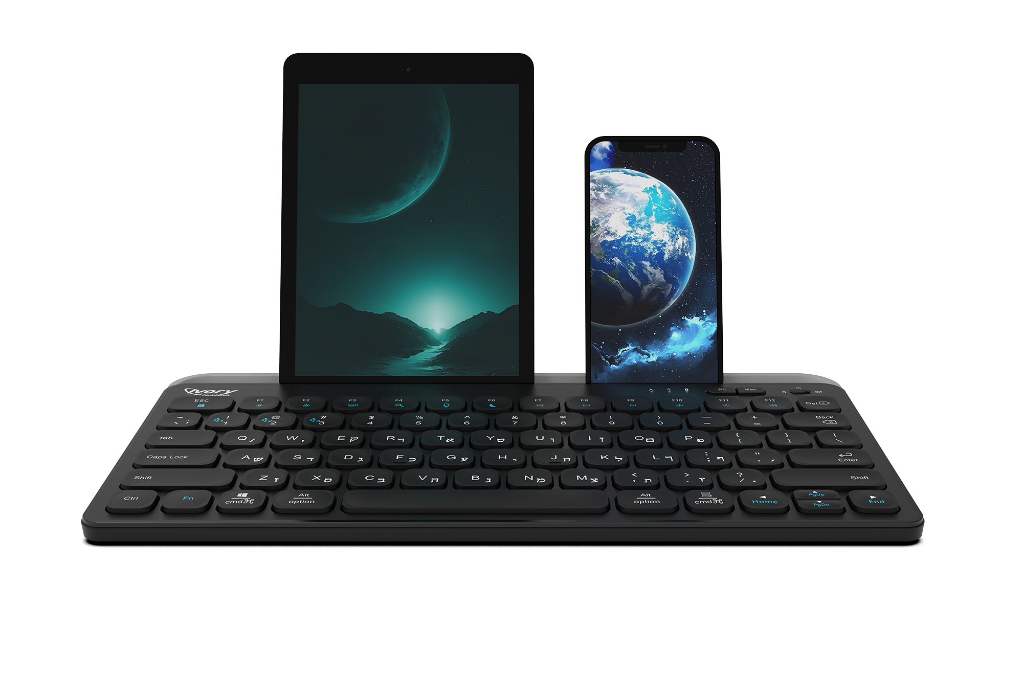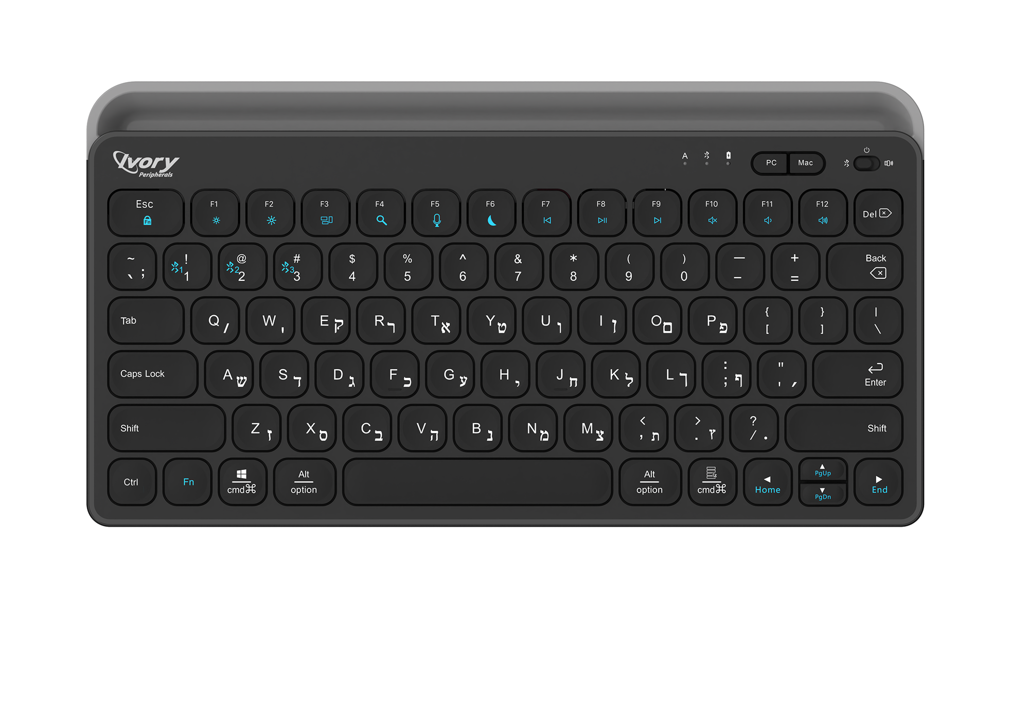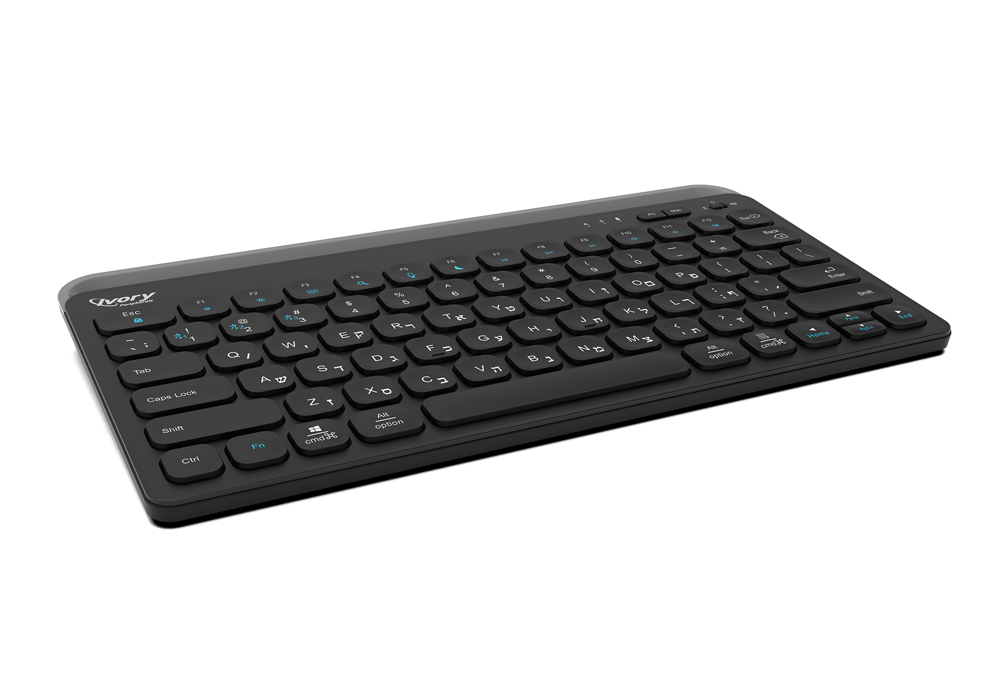 מקלדת אלחוטית בלוטוס 2.4GHz נטענת Ivory Peripherals BT8003XR עברית ואנגלית צבע שחור