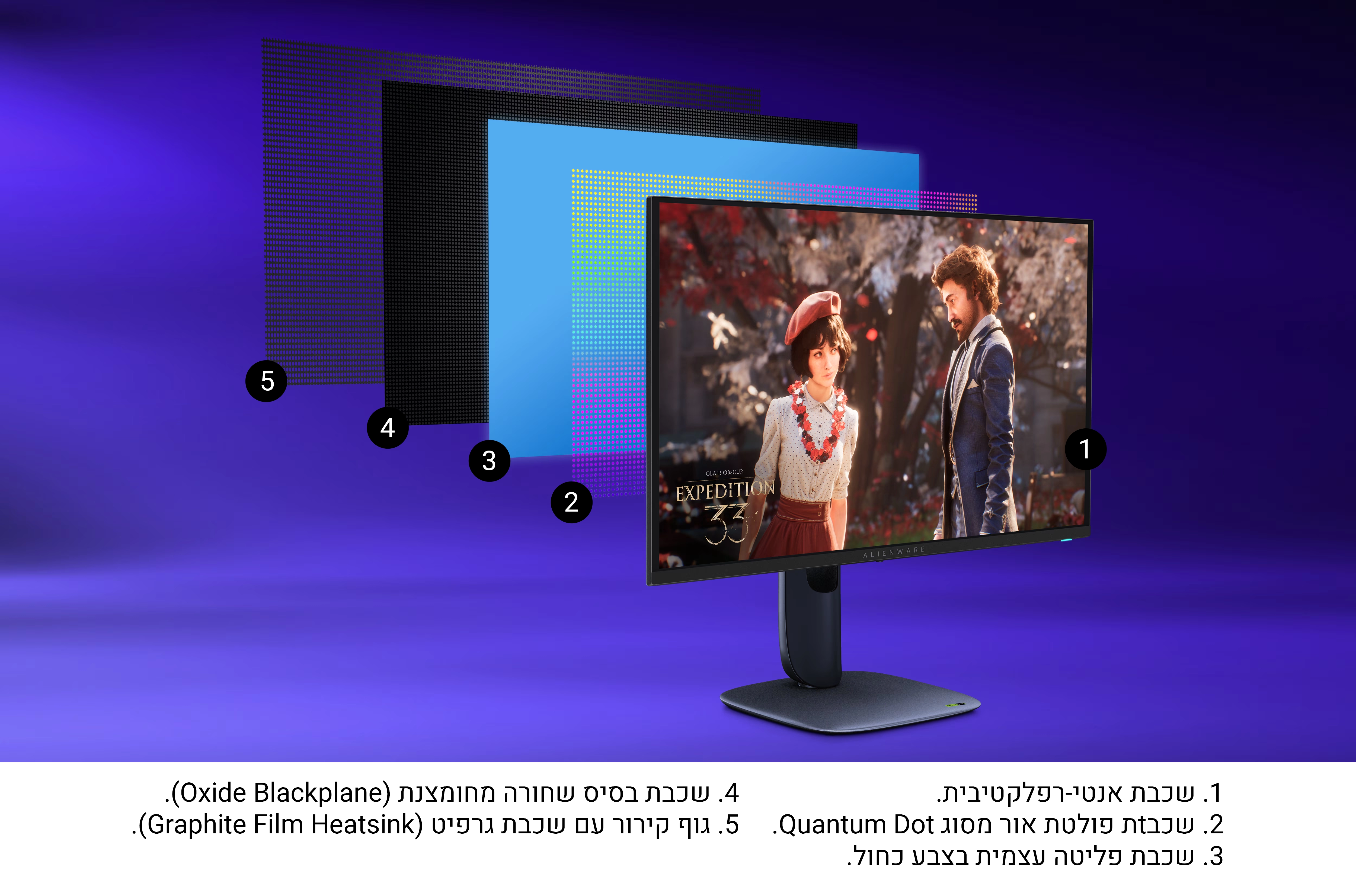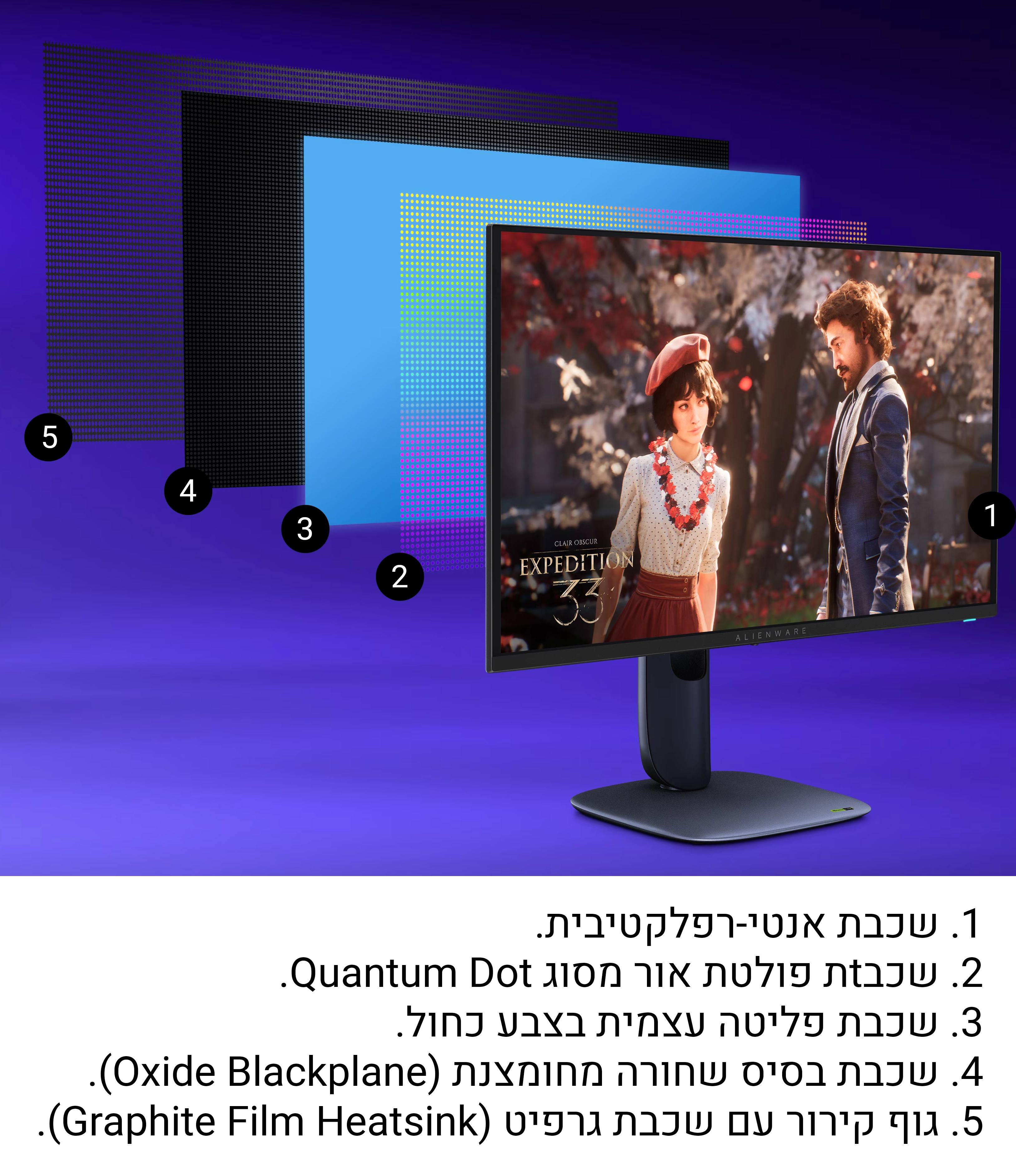 מסך גיימינג 27 אינץ Dell Alienware 27 AW2725Q 4K UHD 240Hz DisplayHDR 600 QD-OLED