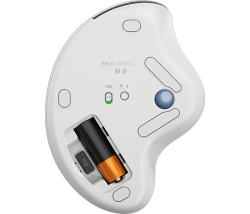 עכבר ה-ERGO M575S יכול לעבוד עד 18 חודשים על סוללת AA (סוללה כלולה).