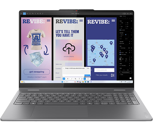שנו את התצורה עם Yoga 7i 2-in-1. העיצוב המתהפך ב-360° מאפשר מעבר קל בין מצבי מחשב נייד, טאבלט או "אוהל" – מושלם לסקיצה, עריכה או הצגה. מסך המגע הרגיש ועט ה-Yoga מספקים שליטה מדויקת וניווט חלק.