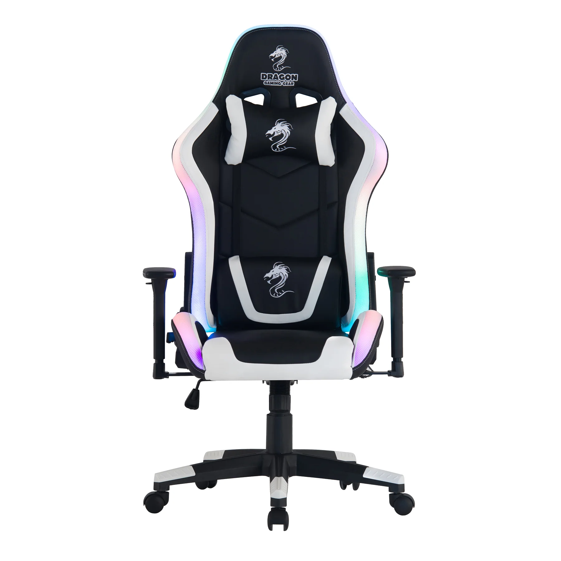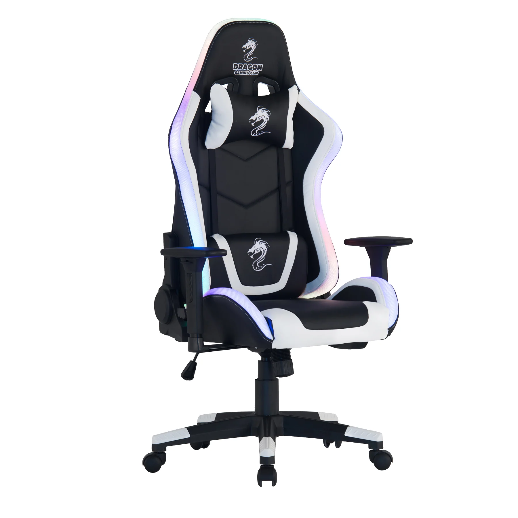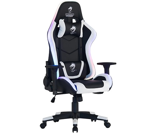 כיסא גיימינג דרגון שחור לבן דמוי עור עם תאורת RGB – משלוח חינם