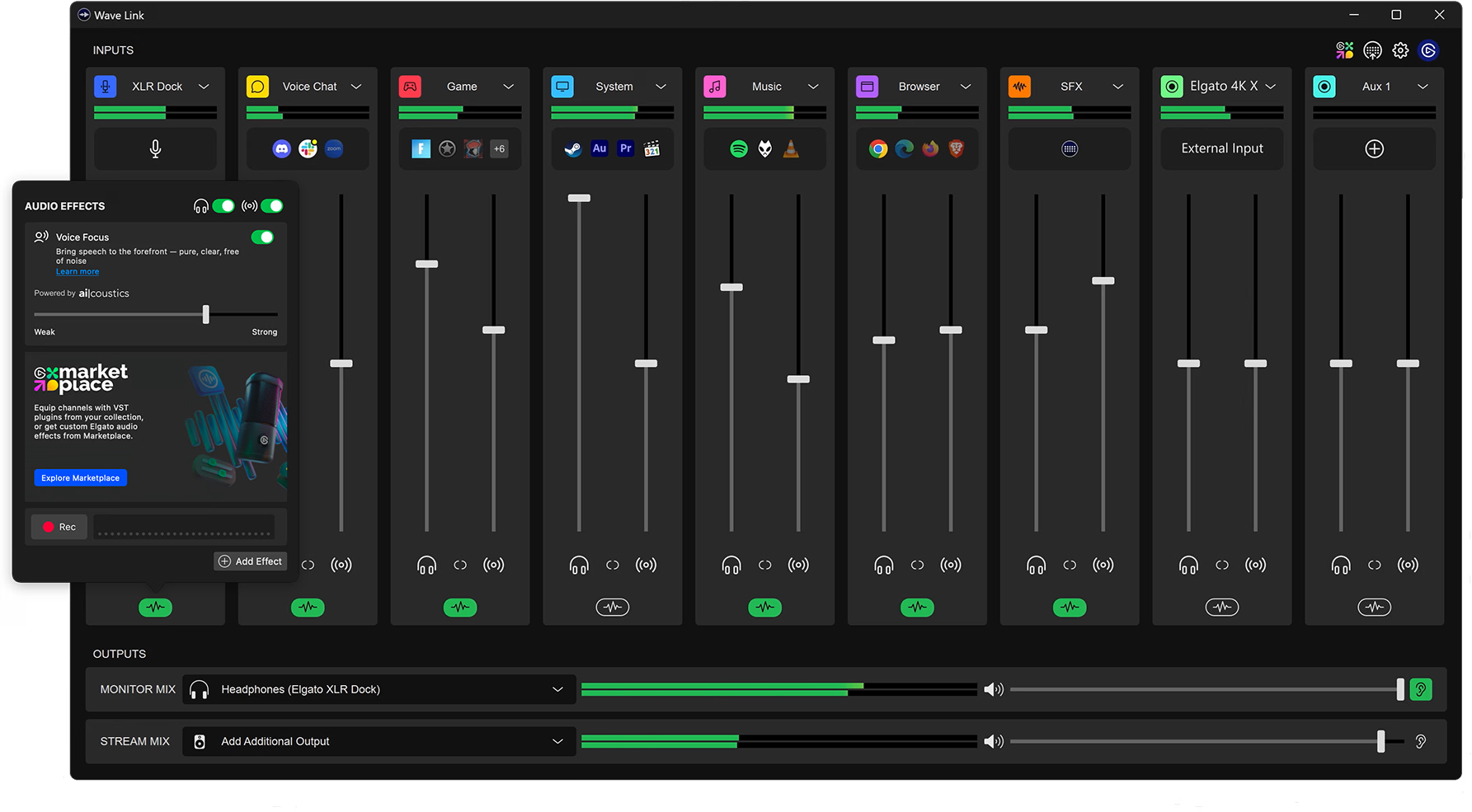 תוכלו להוסיף אפקטים מחנות האונליין או מתוספי VST חיצוניים ישירות למיקסר של Wave Link – בלי צורך בהתקנה ידנית. ניתן להחיל אפקטים על כל ערוץ קלט – מיקרופון, משחק או צ’אט קולי – ואז להתאים אישית את ההגדרות כדי ליצור את הצליל הייחודי שלכם!