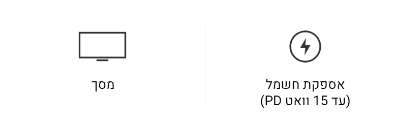 חיבור ה- USB Type-C מאפשר תצוגה וטעינה של המכשיר (עד 15W).