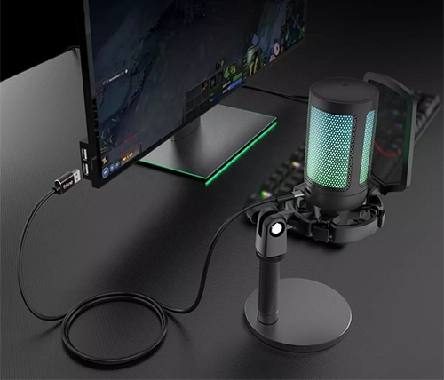 מיקרופון גיימינג קונדנסר שולחני עם תאורת Fifine A6 AmpliGame RGB