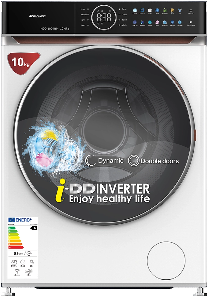מכונת כביסה 10 קילו פתח קדמי 1400 סלד נורמנדה Normande ND 1004BM בצבע לבן – משלוח חינם