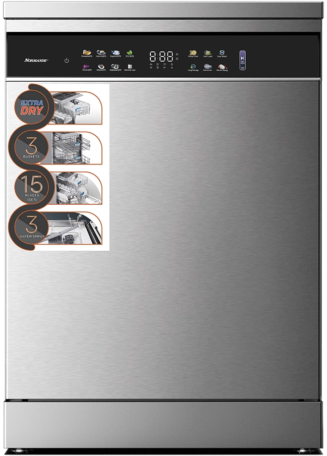 מדיח כלים רחב נורמנדה 15 מערכות כלים Normande ND-6158SS בצבע כסוף - משלוח חינם
