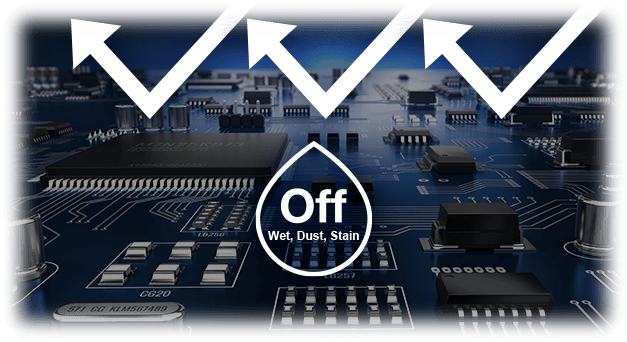 הציפוי הקונפורמי הבלעדי מגן על הספקים מפני אבק, כתמים ולחות, ומבטיח ביצועים טובים ואמינים יותר גם בסביבות קשות.