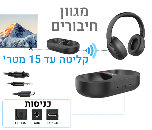 ניתן לחבר את תחנת העגינה / משדר ליציאת האוזניות או האופטית של הטלוויזיה או כל מכשיר שמע עם חיבורים דומים או יציאת שמע (RCA L/R) באמצעות הכבלים המצורפים.
