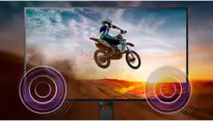 הצג כולל זוג רמקולים סטריאופוניים באיכות גבוהה, המשולבים בעיצובו. מיקום הרמקולים משתנה בהתאם לדגם – קדמי, אחורי, עליון או תחתון – ומספק סאונד איכותי לצרכים יומיומיים.