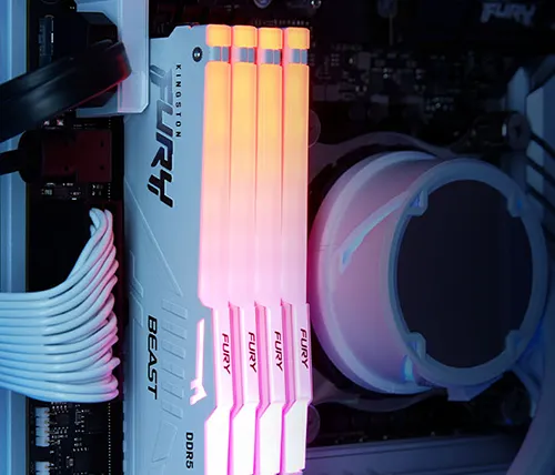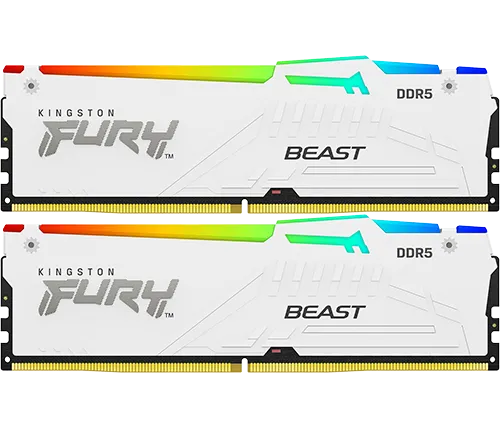 מציאון - זכרון למחשב Kingston FURY Beast White DDR5 RGB 5200MHz 2x32GB KF552C40BWAK2-64 DIMM לבן - מוחדש