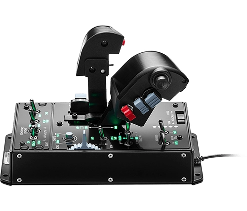 ה-HOTAS WARTHOG עשוי מתכת – גם בידיות, גם בבסיסים – ומציג נוכחות פיזית מרשימה. הוא כולל 55 כפתורי פעולה ניתנים לתכנות ו-2 מתגים כיווניים בעלי 4 כיוונים, שכל אחד מהם משולב בכפתור לחיצה – הפיצ'ר הראשון מסוגו בעולם. כל זה הופך את ה-WARTHOG לאביזר ייחודי בקטגוריה שלו.
