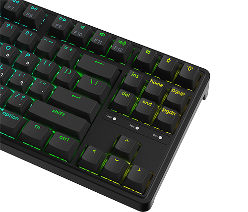 תאורת RGB הופכת את האותיות על המקשים לבהירות יותר בחשיכה. ובעזרת מקשי Shine-Through מקבלים אפקט תאורה צבעוני, מרשים ומרהיב במיוחד.