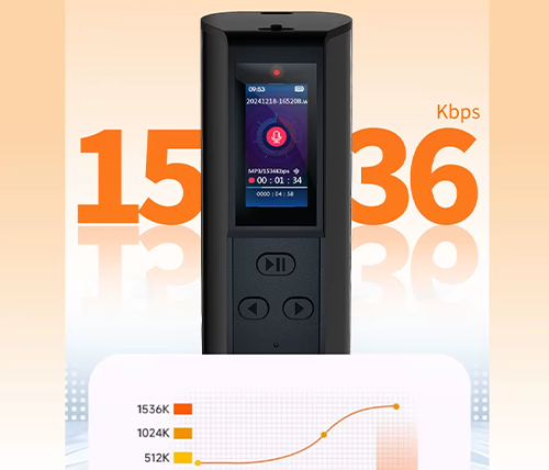 תוכלו להקליט ברזולוציה של עד 1536kbps עבור שמע מפורט ברור יותר.