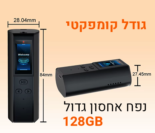 מכשיר הקלטה סמוי קומפקטי - כולל נפח אחסון 128GB ורמקול מובנה - צבע שחור - Ivory Sound L518