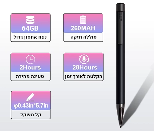 פתרון אידיאלי לסטודנטים, לאנשי עסקים, ולכל מי שצריך לתעד ישיבות, שיחות, הרצאות או רעיונות בקלות ובדיסקרטיות.