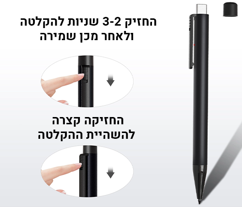 מכשיר הקלטה בתוך עט - כולל נפח אחסון 64GB - צבע שחור - Ivory Sound V29