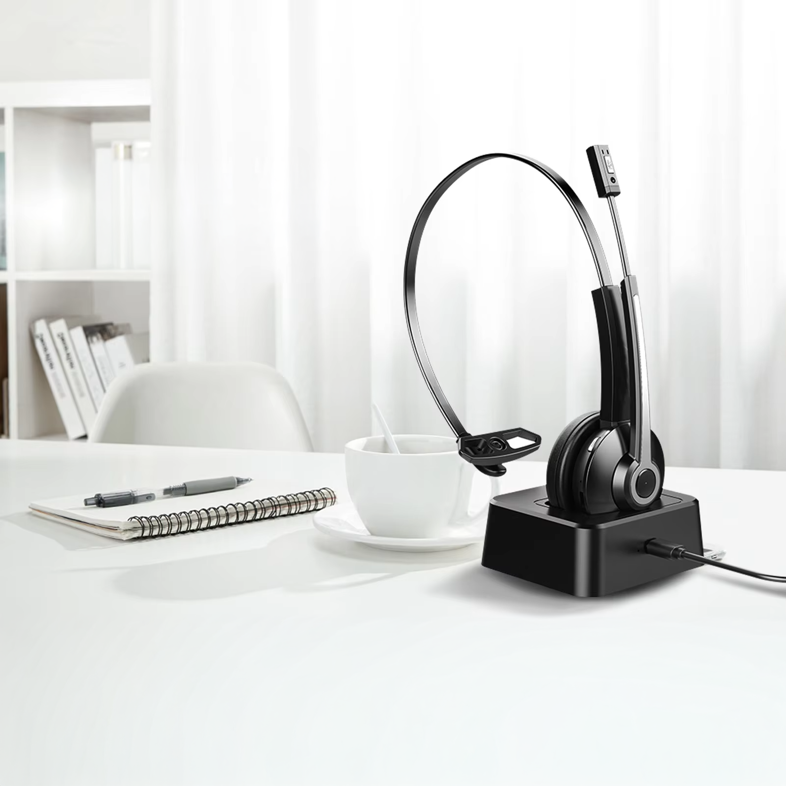 אוזניות מוקד אלחוטיות בלוטוס טעינת USB-C עם מיקרופון MIZUKI Bluetooth-681C בצבע שחור