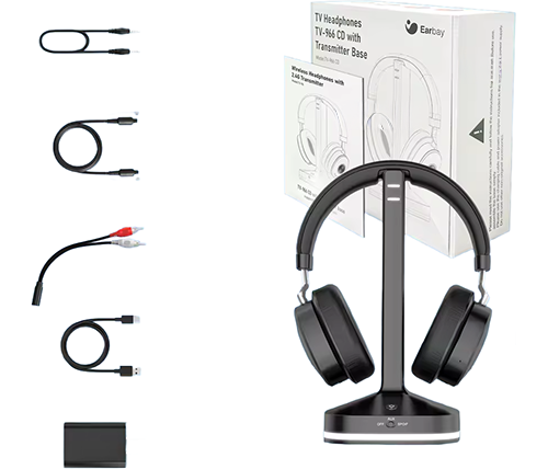 אוזניות לטלוויזיה אלחוטיות נטענות עם מיקרופון TV-966 On Ear לטלוויזיה בצבע שחור