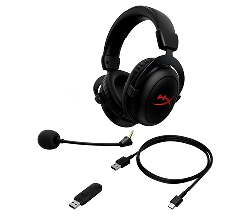 אוזניות גיימינג הייפר איקס - אלחוטיות 2.4Ghz ריפוד זיכרון חכם עם מיקרופון סוללה חזקה - צבע שחור - HyperX CloudX II Core