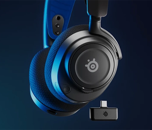 אוזניות גיימינג סטייל סייריס - בלוטוס אלחוטיות סוללה חזקה - צבע שחור וכחול - Steelseries Arctis Nova 7P On-Ear BT 2.4Ghz