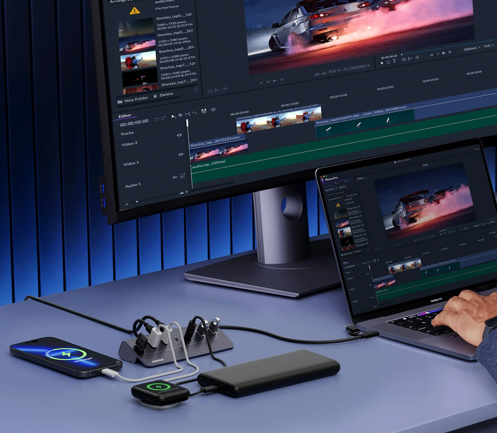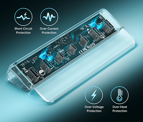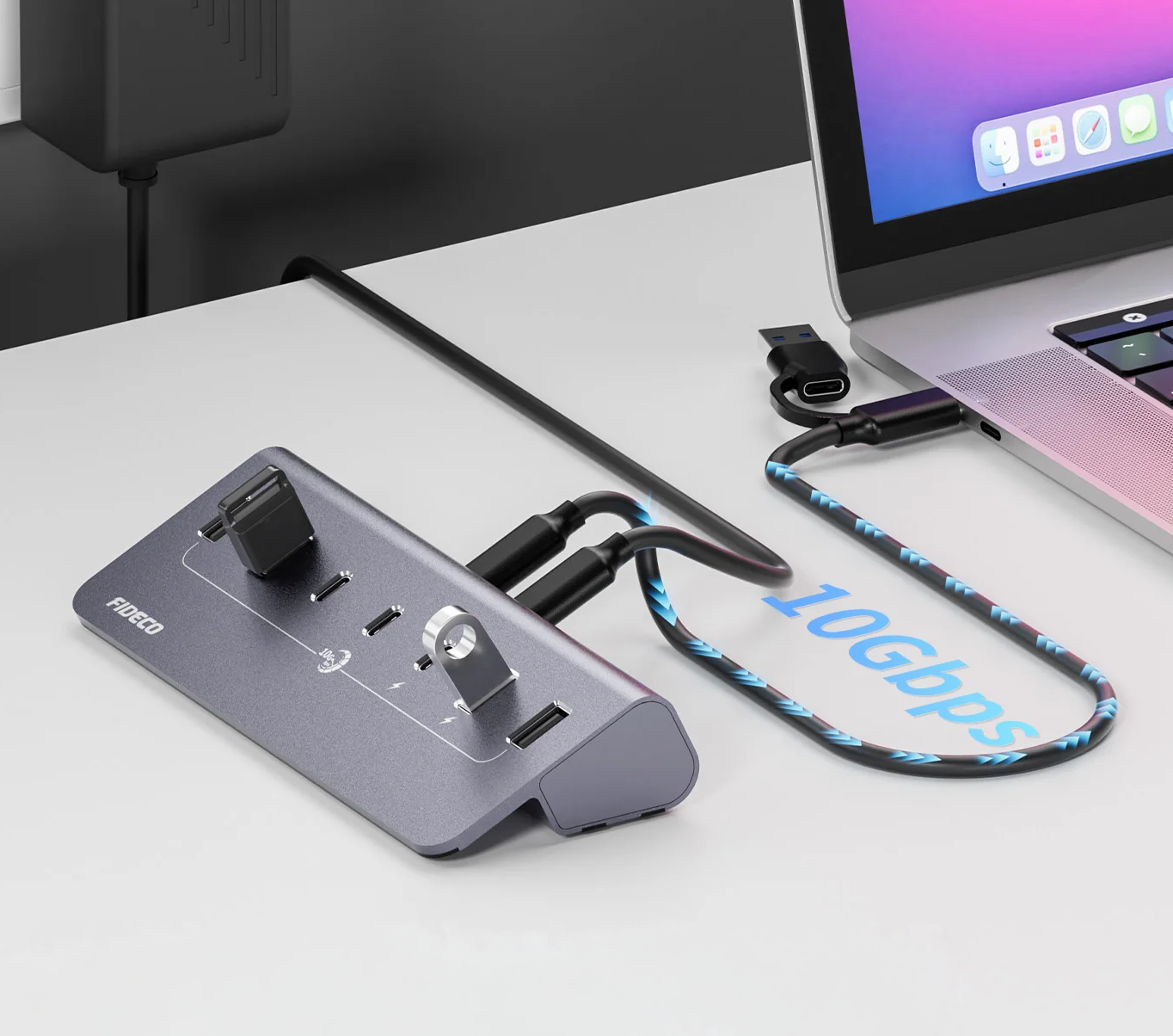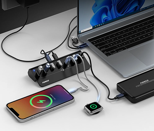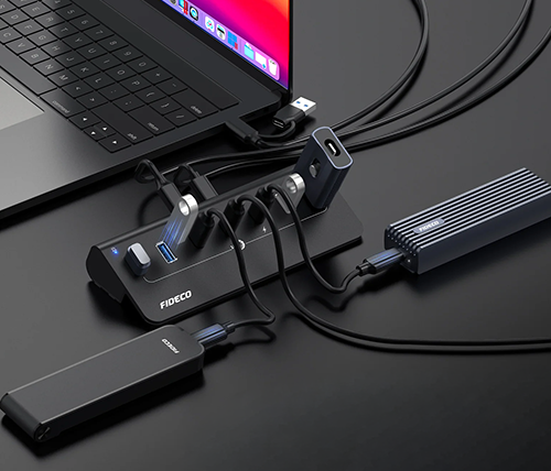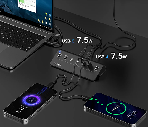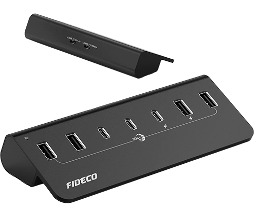 מפצל USB 3.2 Gen2 עם 7 יציאות – כולל יציאות USB-C – כולל ספק כח – FIDECO H708C43