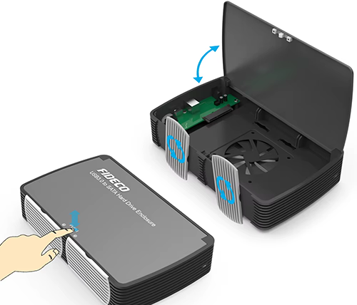 מארז ה-FIDECO A3U נועד לחסוך זמן ולהפוך את העבודה לנוחה במיוחד. בעזרת מנגנון פתיחה מהירה בלחיצה, ניתן לפתוח את המארז ולהחליף כוננים בתוך שניות — ללא מברגים, ללא התקנות וללא מאמץ. אידיאלי למי שעובד עם כמה כוננים, מבצע גיבויים תכופים או צריך גישה מהירה לנתונים שונים.