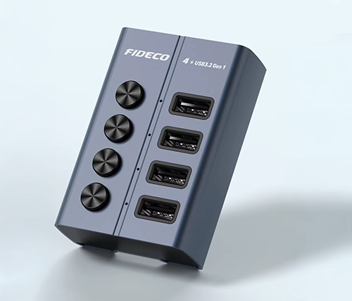 מפצל ה-USB של FIDECO מעניק לכם את החופש לחבר בקלות מגוון רחב של התקנים – עכברים, מקלדות, דיסקים חיצוניים, מדפסות ועוד – דרך חיבור אחד נוח.