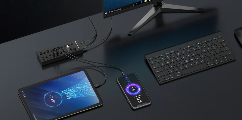 נורית LED שימושית – לכל יציאת USB יש נורית חיווי כחולה ייעודית, המאפשרת לזהות בקלות את מצב הפעולה שלה.