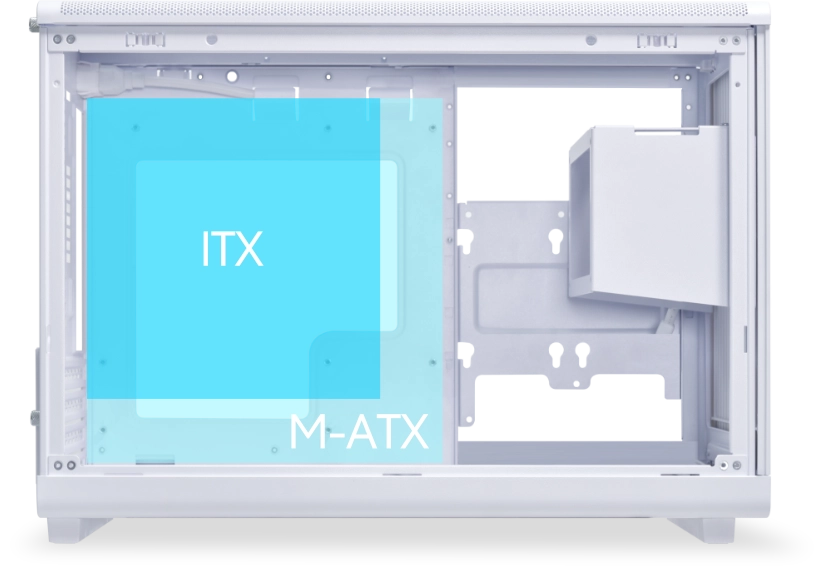 המארז מציע מספר אפשרויות התקנה לספקי כוח באורך מקסימלי של 220 מ"מ (ATX / SFX / SFX-L או LIAN LI Edge), כדי לאפשר לכם למקם את הספק בצורה האידיאלית בהתאם לדרישות הבנייה שלכם.