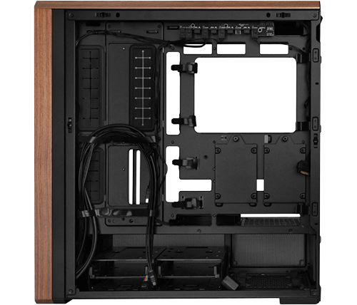 כאשר ספק הכוח מסובב ב־90° וחיבוריו פונים לצד ימין, ניתן להתקין ספק קומפקטי באורך של עד 180 מ"מ. תצורה זו מייעלת את ניתוב הכבלים, מאפשרת למאוורר לקרר ישירות את ספק הכוח ומשפרת את יעילות הקירור. בנוסף, תוכלו להזיז את שני המאווררים התחתונים הכלולים מתחת לתושבת לקבלת מראה נקי ומסודר יותר.