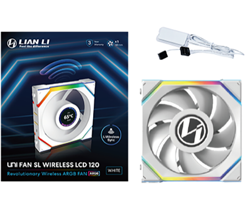 מאוורר למארז 12 ס''מ עם מסך Lian Li UNI FAN SL Wireless - צבע לבן