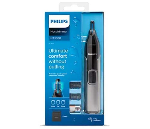 קוצץ שיער PHILIPS NT3650 לאף ולאוזניים 100% נוחות, ללא משיכה, כולל מערכת הגנה, 2 מסרקי גבות ונרתיק