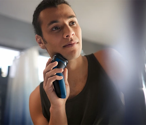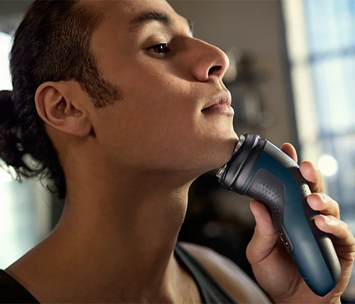 ראשי גילוח צפים שנעים בשלושה כיוונים ומסתגלים לקווי המתאר של הפנים מבלי לפצוע את העור.