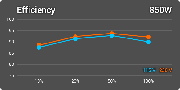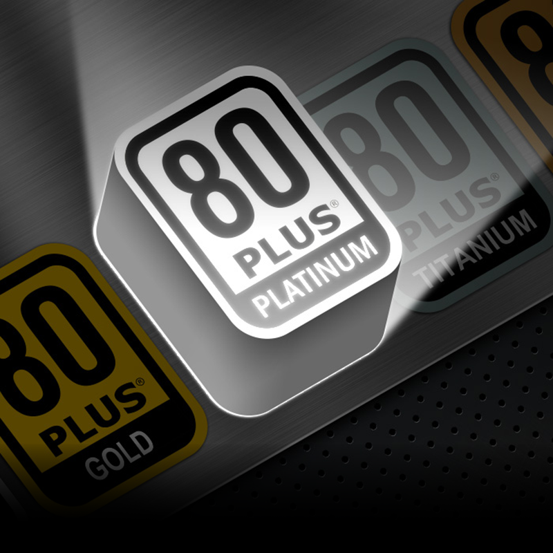 סדרת Hydro PTM PRO מגיעה עם הסמכת 80 Plus Platinum – מה שמעיד על צריכת חום נמוכה יותר ועלות תפעול נמוכה יותר. הסדרה מבטיחה יעילות של לפחות 92% ב-50% עומס מההספק הנקוב של ספק הכוח.